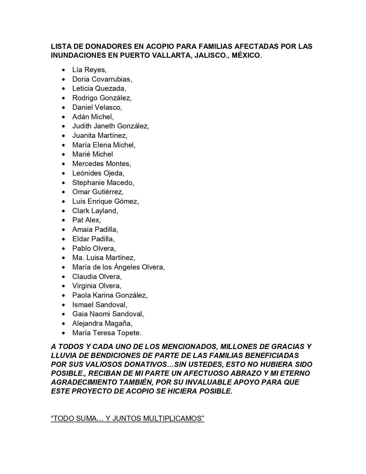 ¡AGRADECIMIENTO Y BENDICIONES DE PARTE DE TODOS LOS BENEFICIADOS CON TU APORTACIÓN!